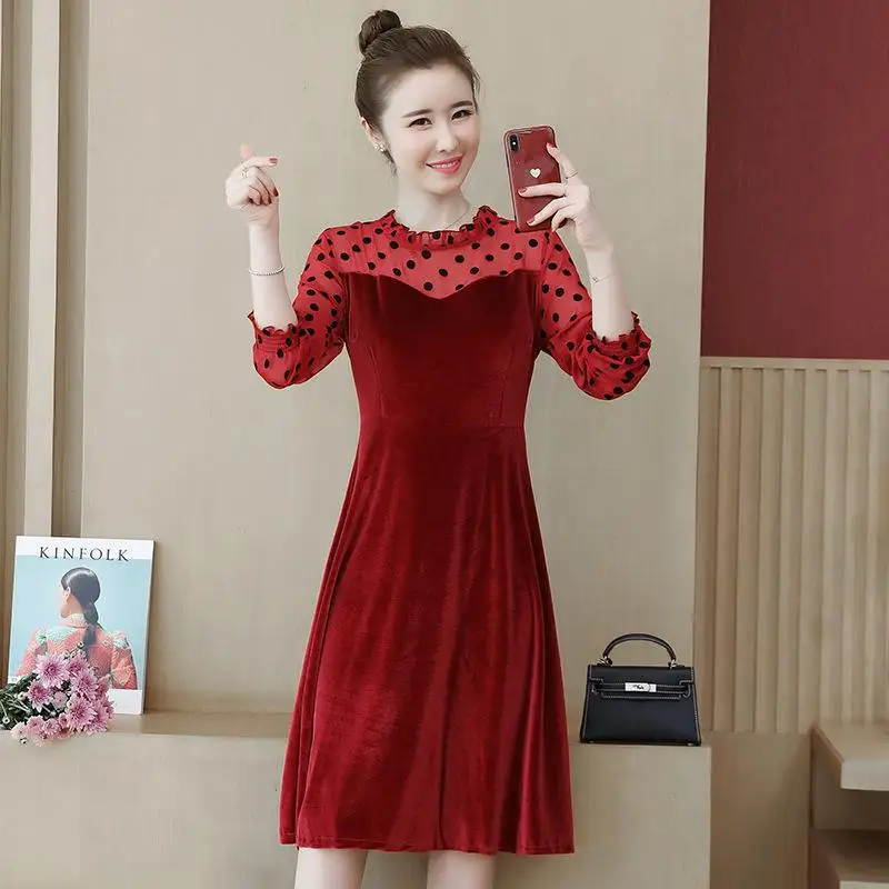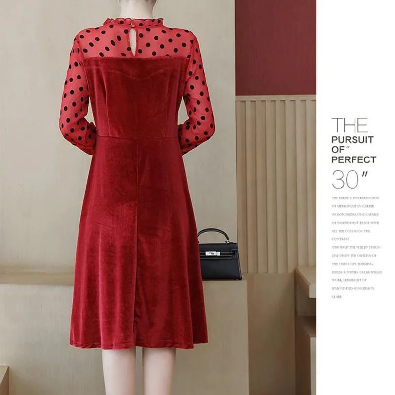 TOP COCOEPPS Big Size Lace Dress Plus Size Autumn Polka dot Mesh Casual vestidos Winter Female Clothes
